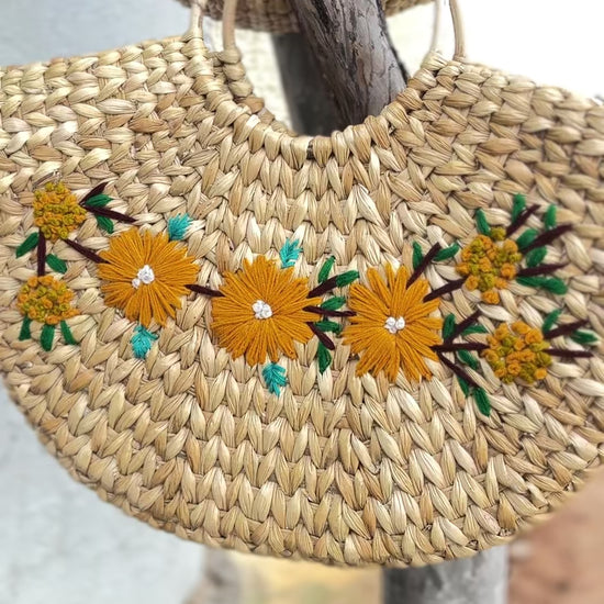 Handcrafted from natural fibres and adorned with vibrant floral embroidery, this Eco-friendly bag adds a touch of sustainable elegance to your everyday style. Perfect for brunches, getaways, and sunny strolls.